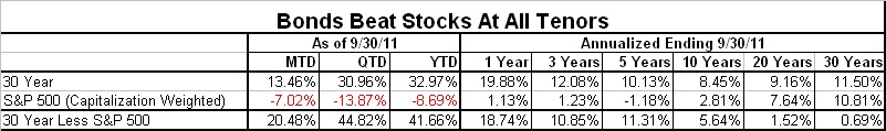 Summary: 24th anniversary of the '87 stock market crash. Let the video to the right take you back to unforgettable music, hairdo's and shoulder toppings. By the way, over the past 30 years, bonds have returned more than stocks. Thanks a lot for Finance 101 courses.